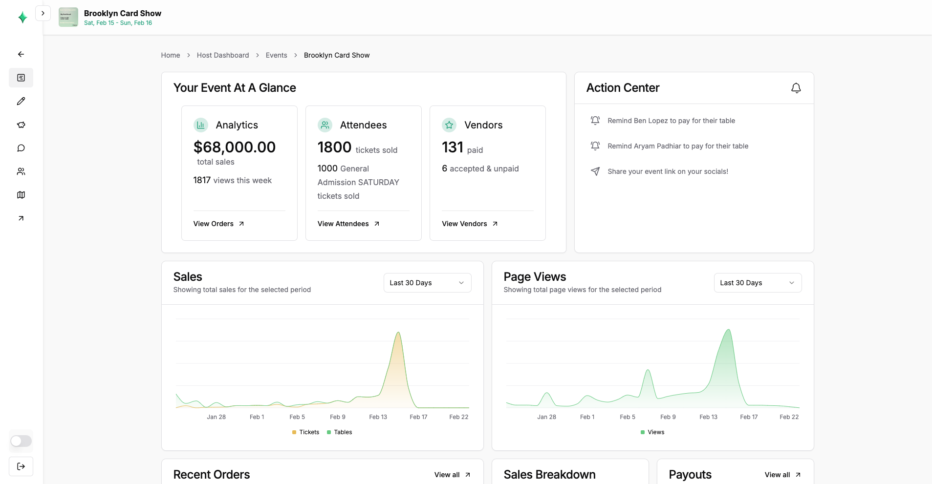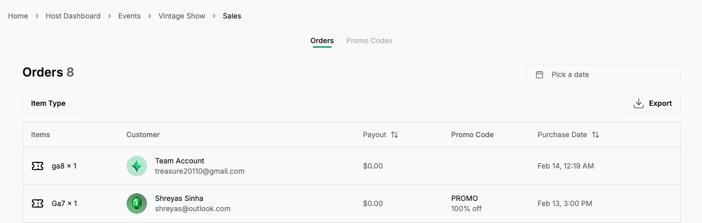 From the event’s dashboard, click “View Orders” to navigate to your event’s Sales page